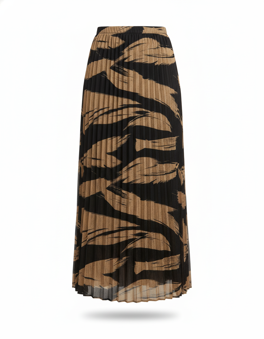 Jupe Longue Plissée Motif Abstrait Chic