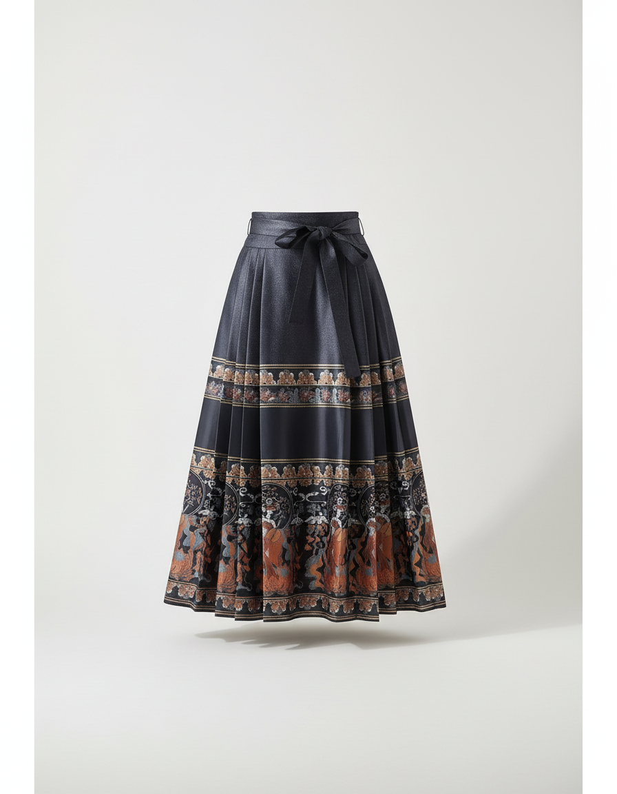 Jupe Longue Plissée Motif Ethnique Élégante : L'Éclat du Style