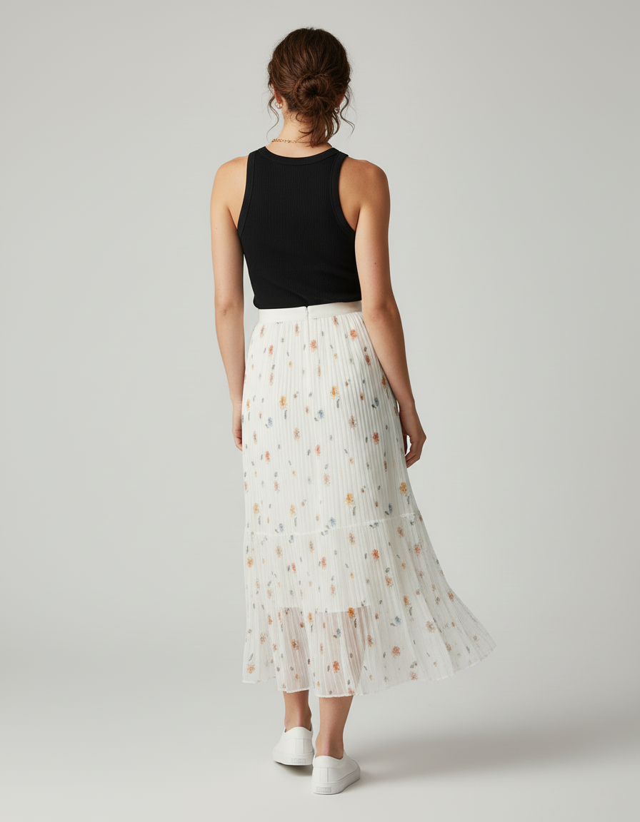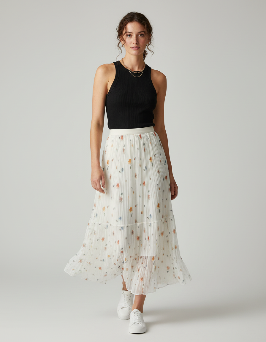 Pour un style quotidien chic et décontracté, mariez-la à un top uni ajusté et des baskets épurées, comme suggéré, pour une silhouette moderne et désinvolte. En soirée ou pour une occasion spéciale, elle se transforme aisément avec un chemisier fluide et des sandales à talon, révélant son potentiel sophistiqué. Cette jupe est la toile parfaite pour exprimer votre personnalité, fusionnant l'allure fleurie à une élégance intemporelle pour toutes vos envies.