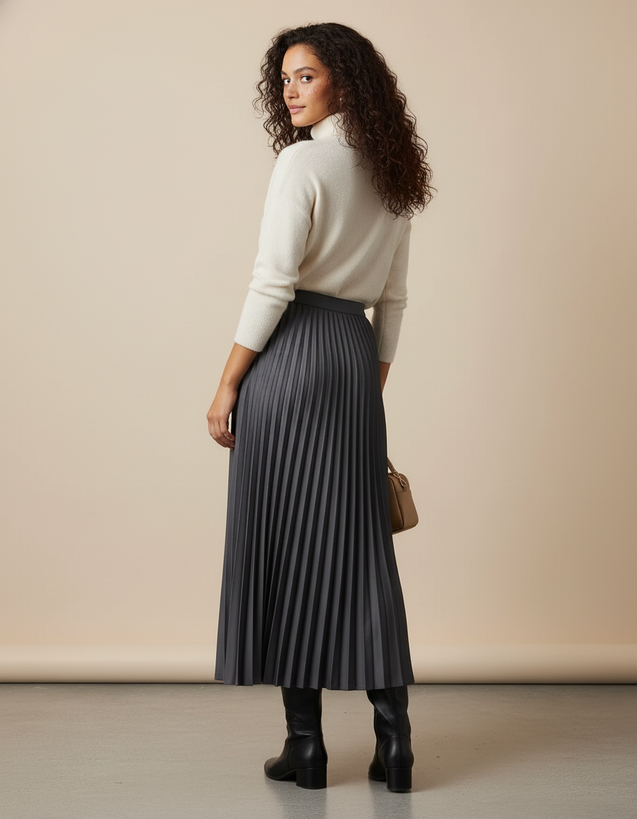Jupe Longue Plissée Simili Cuir : L'Élégance Fluide au Quotidien
