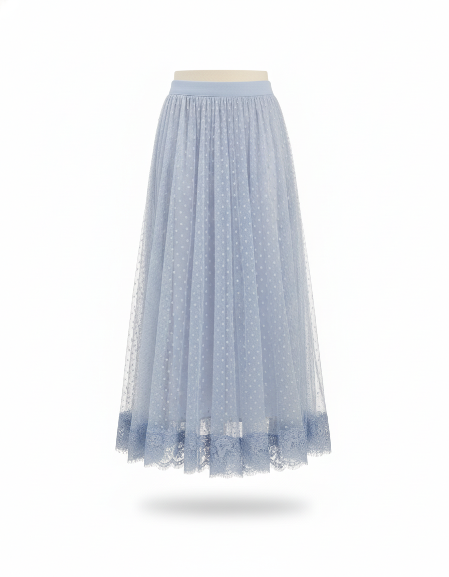 Découvrez notre Jupe Longue Plissée Tulle, une pièce maîtresse conçue pour les moments inoubliables. Sa taille haute souligne la silhouette avec une grâce infinie, tandis que son tulle bleu aérien, orné de délicats pois, danse à chacun de vos pas. Idéale pour les cérémonies, mariages ou soirées distinguées, elle se marie parfaitement avec un top en soie et des escarpins pour un look sophistiqué et intemporel. Nous avons veillé à un confort absolu et une liberté de mouvement totale, vous permettant de vous déplacer avec aisance et élégance tout au long de l'événement.