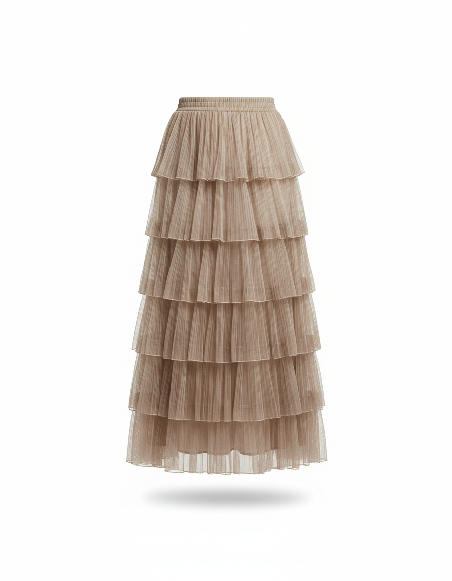 Jupe Longue Plissée Tulle Élégante Femme : Modèle à Superpositions