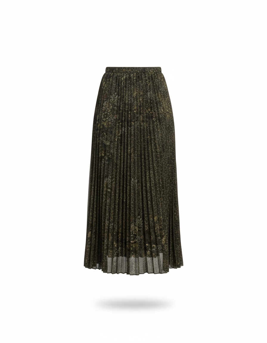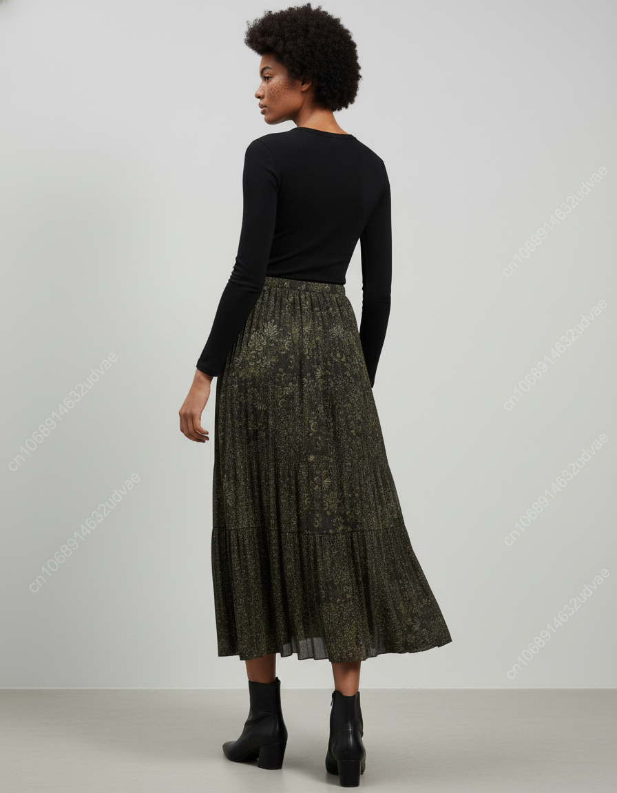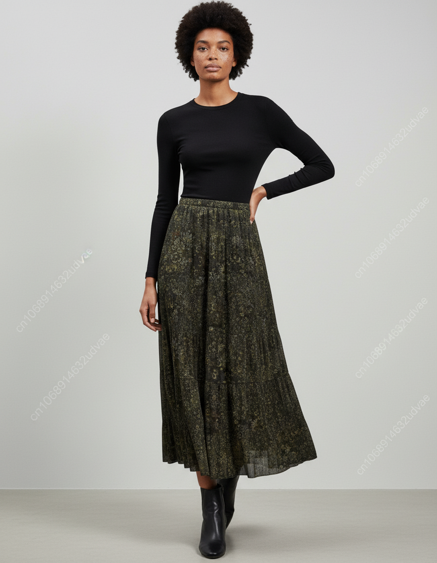 Jupe Longue Plissée Verte Imprimée Fluide : L'Élégance en Mouvement
