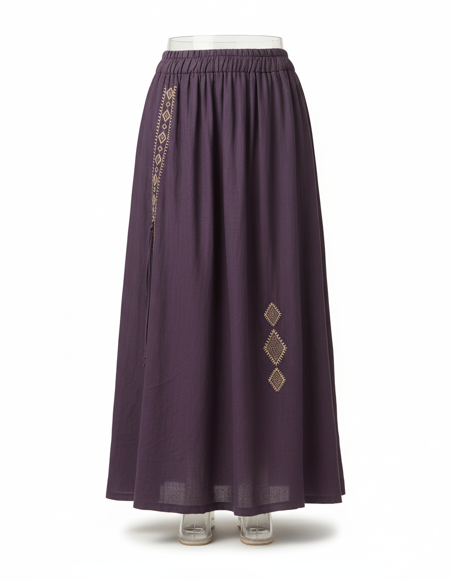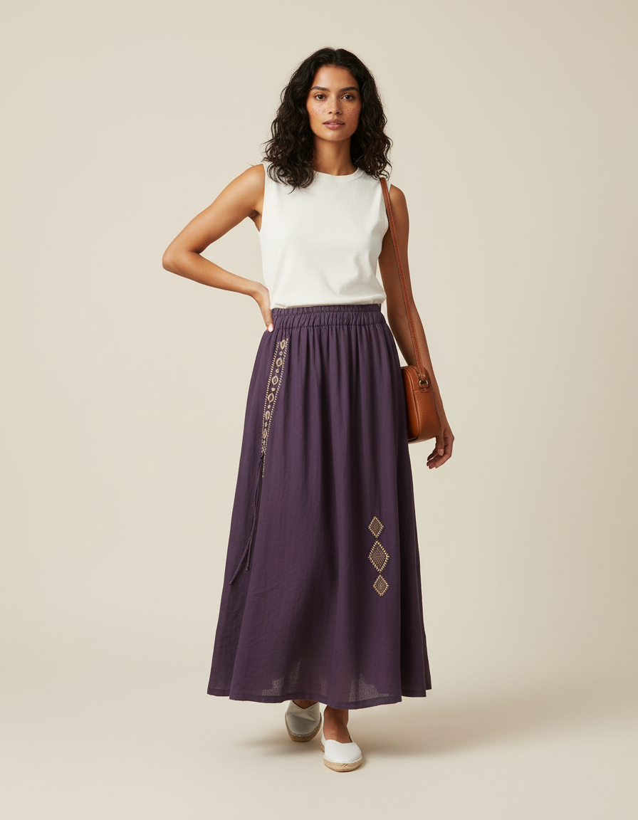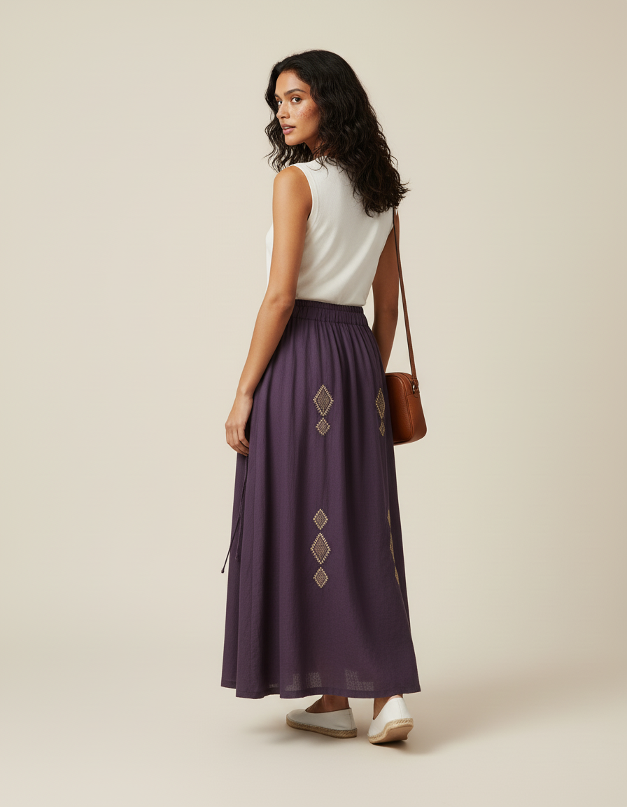 Jupe Longue Bohème Brodée : L'Éclat du Lin Pourpre