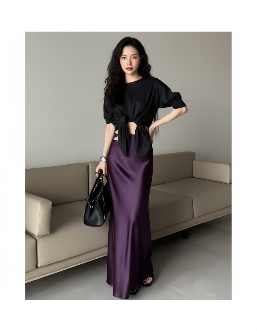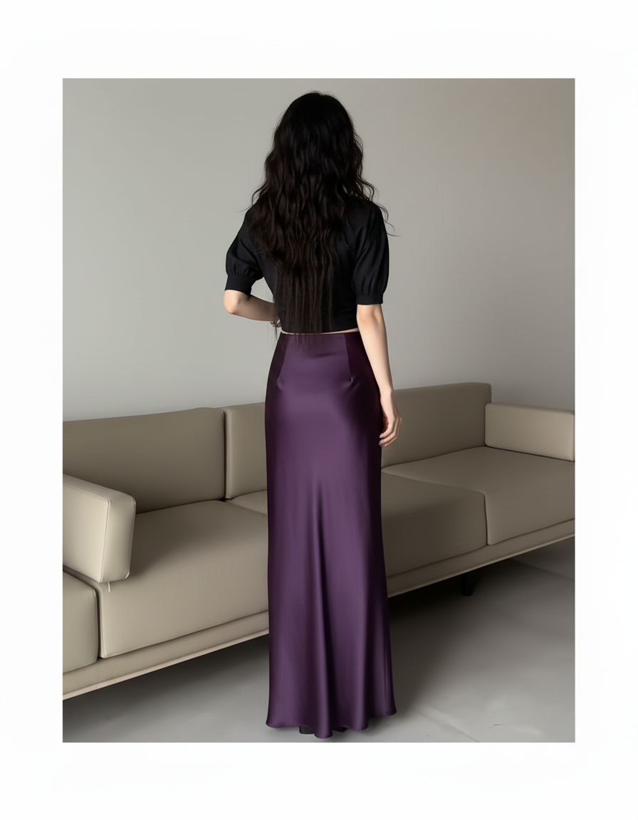 La Jupe Longue Pourpre Soie Glacée Fluide : L'Élégance Captivante