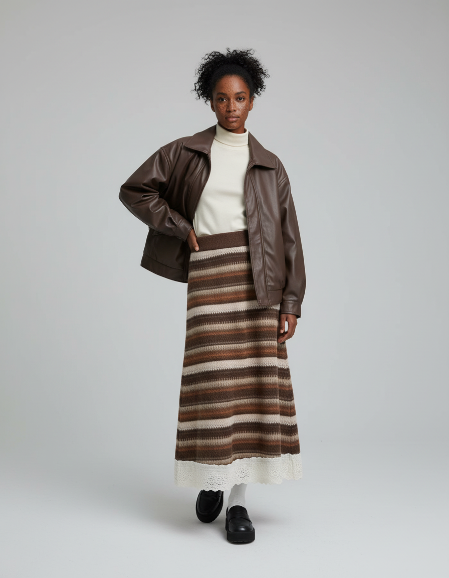 Jupe Longue Rayée Dentelle Bohème : Conception Tricotée à Rayures