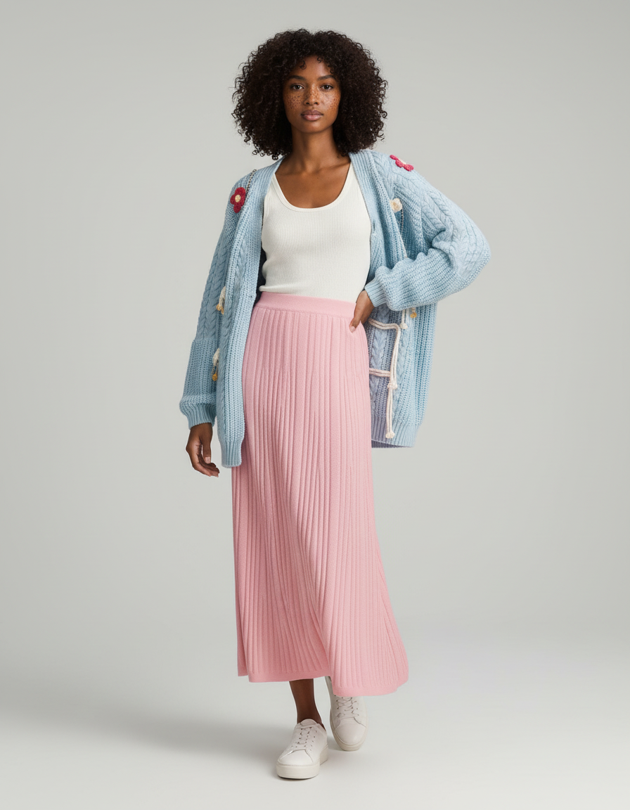 L'Élégance Sans Effort : La Jupe Longue Côtelée Rose