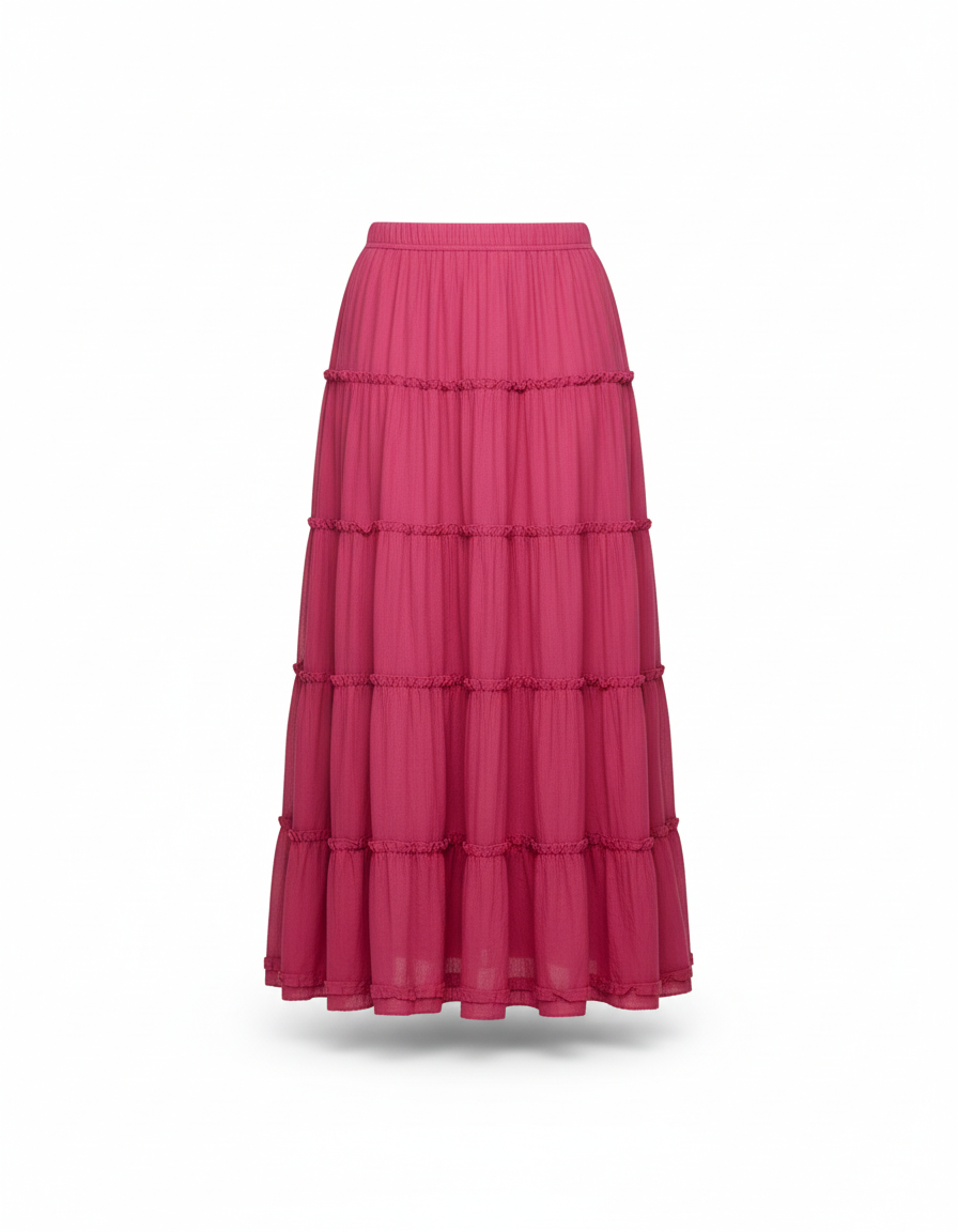 Jupe Longue Rose Fuchsia Volants Fluide : Design en Couches