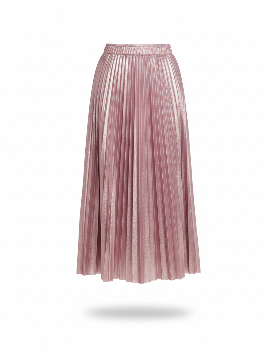 Jupe Longue Rose Métallisée Élégante – Tissu Plissé