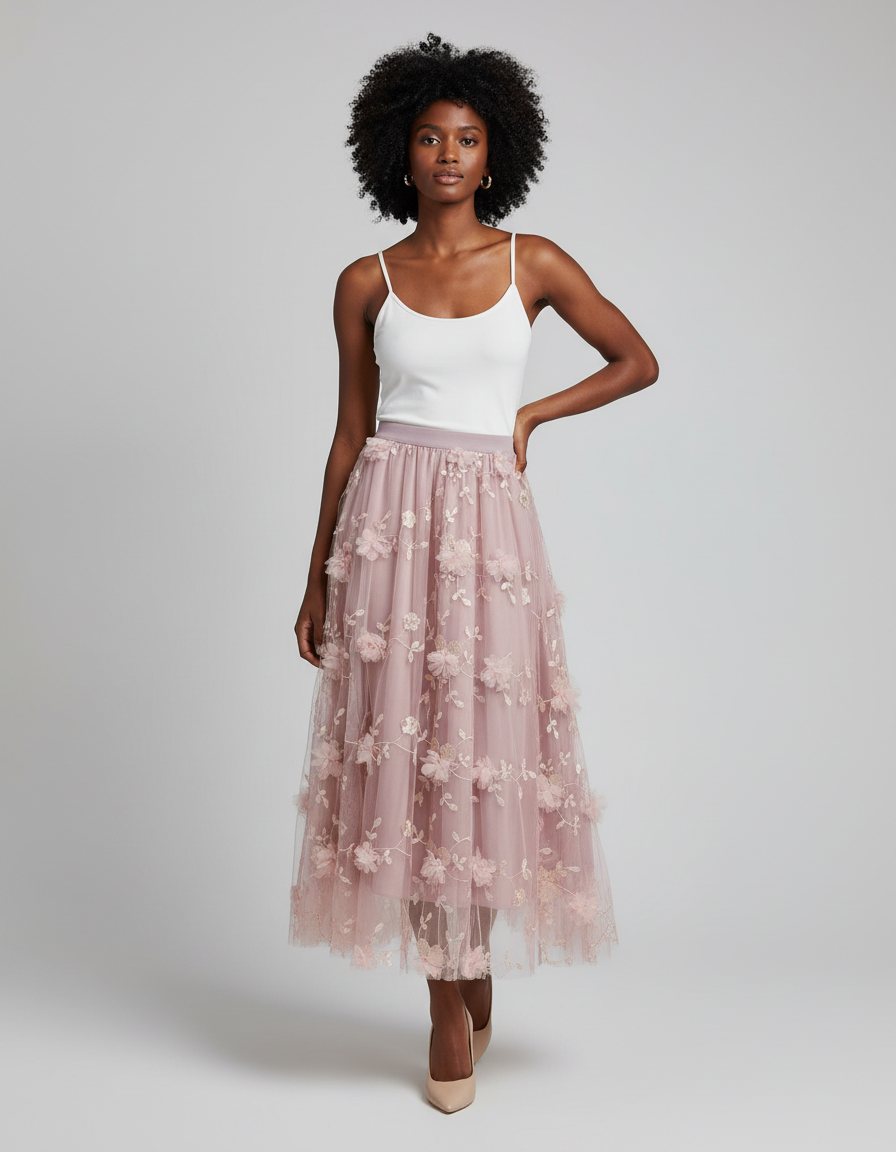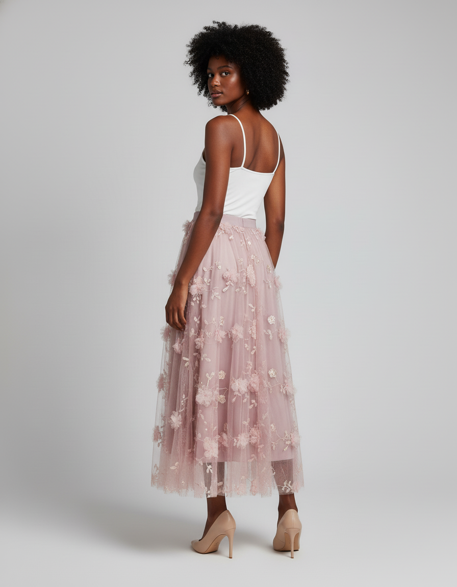 La Jupe Longue Rose Poudré 3D : L'Élégance en Mouvement