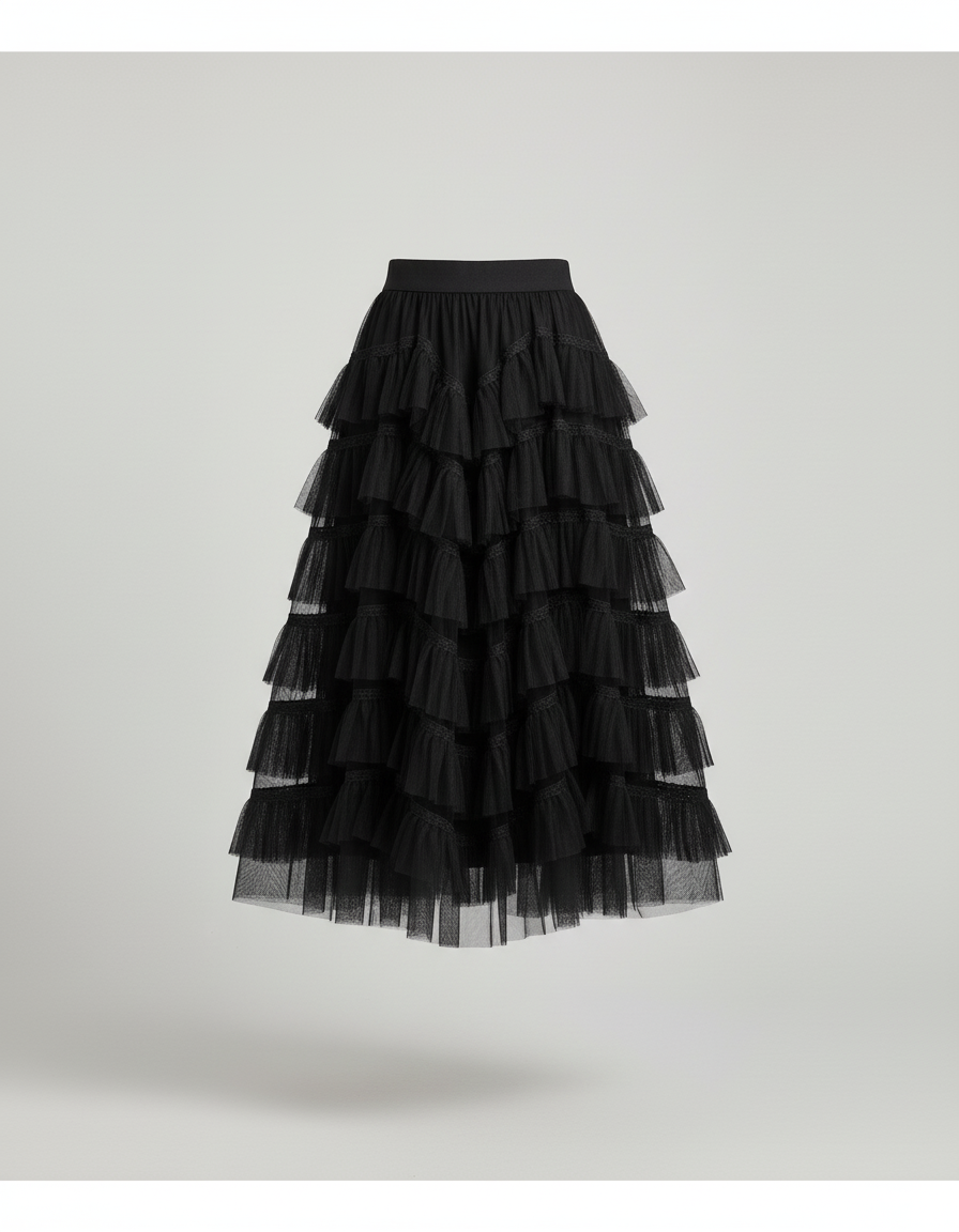 Ce qui distingue véritablement notre jupe, c'est son mariage audacieux entre le volume généreux du tulle et la délicatesse d'un rose poudré intemporel. Chaque volant, méticuleusement superposé et rehaussé d'un fin liseré noir, crée une profondeur visuelle unique et un mouvement fluide qui capte la lumière. Loin des créations éphémères, cette jupe ample en tulle est une œuvre d'art textile, promettant non seulement un confort absolu grâce à sa taille élastiquée discrète, mais aussi une durabilité et un style qui transcendent les saisons. Elle est la pièce maîtresse qui signera votre allure avec audace et poésie, se démarquant par sa confection artisanale et son design intemporel.