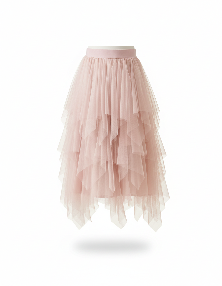 Jupe Longue Rose Tulle Superposée Chic : Une Allure Éthérée et Moderne