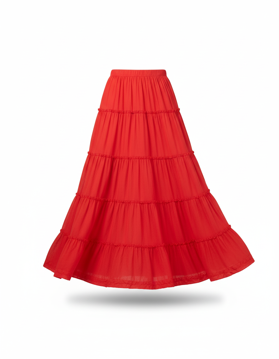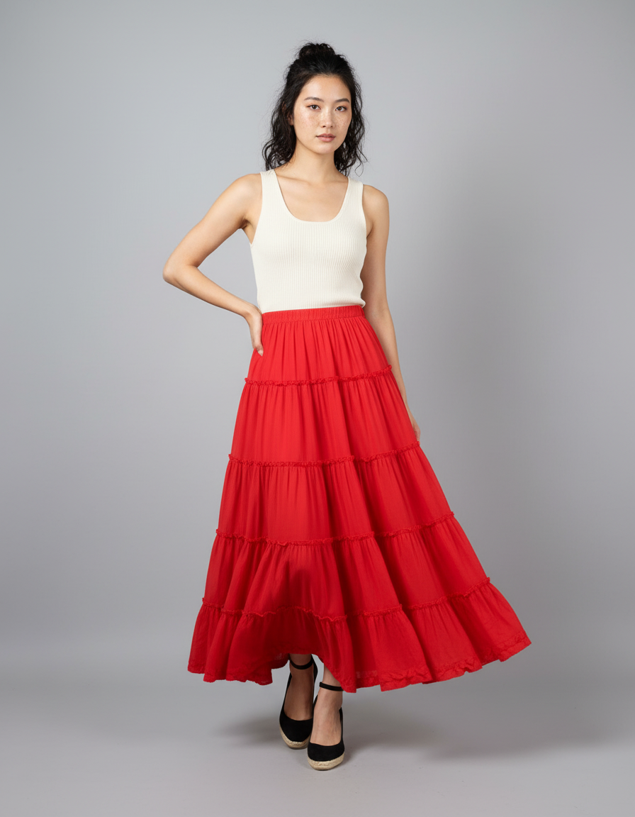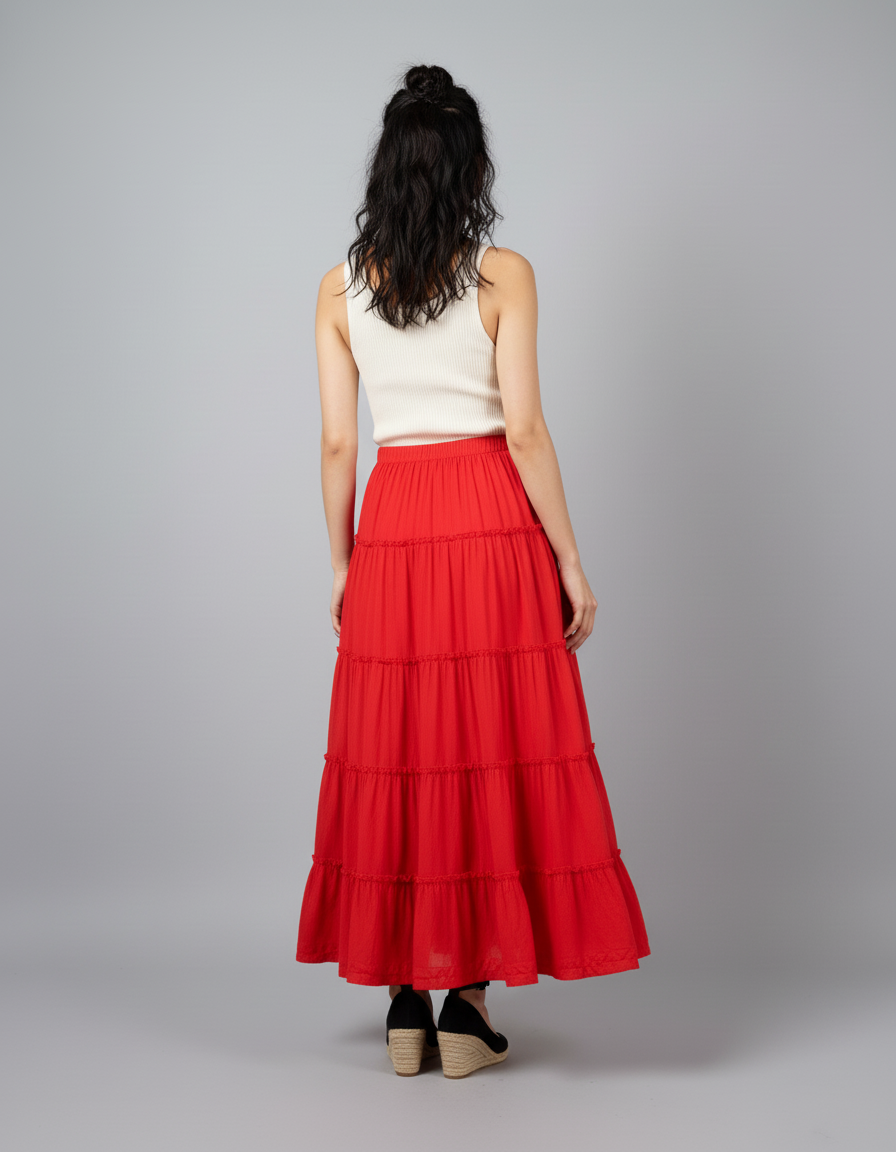 Jupe Longue Rouge À Volants Fluide : L'Élégance Décontractée Réinventée
