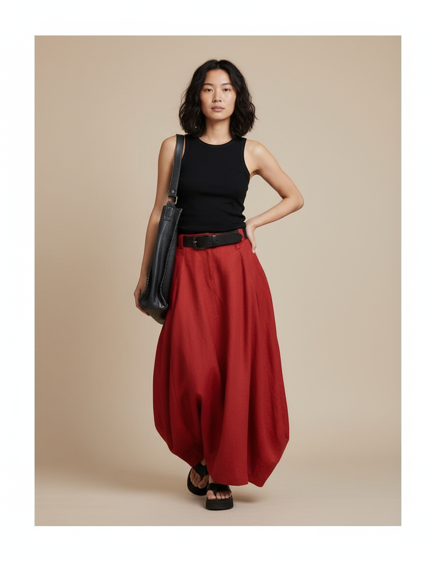 Jupe Longue Rouge Ample Décontractée : L'Art du Mouvement