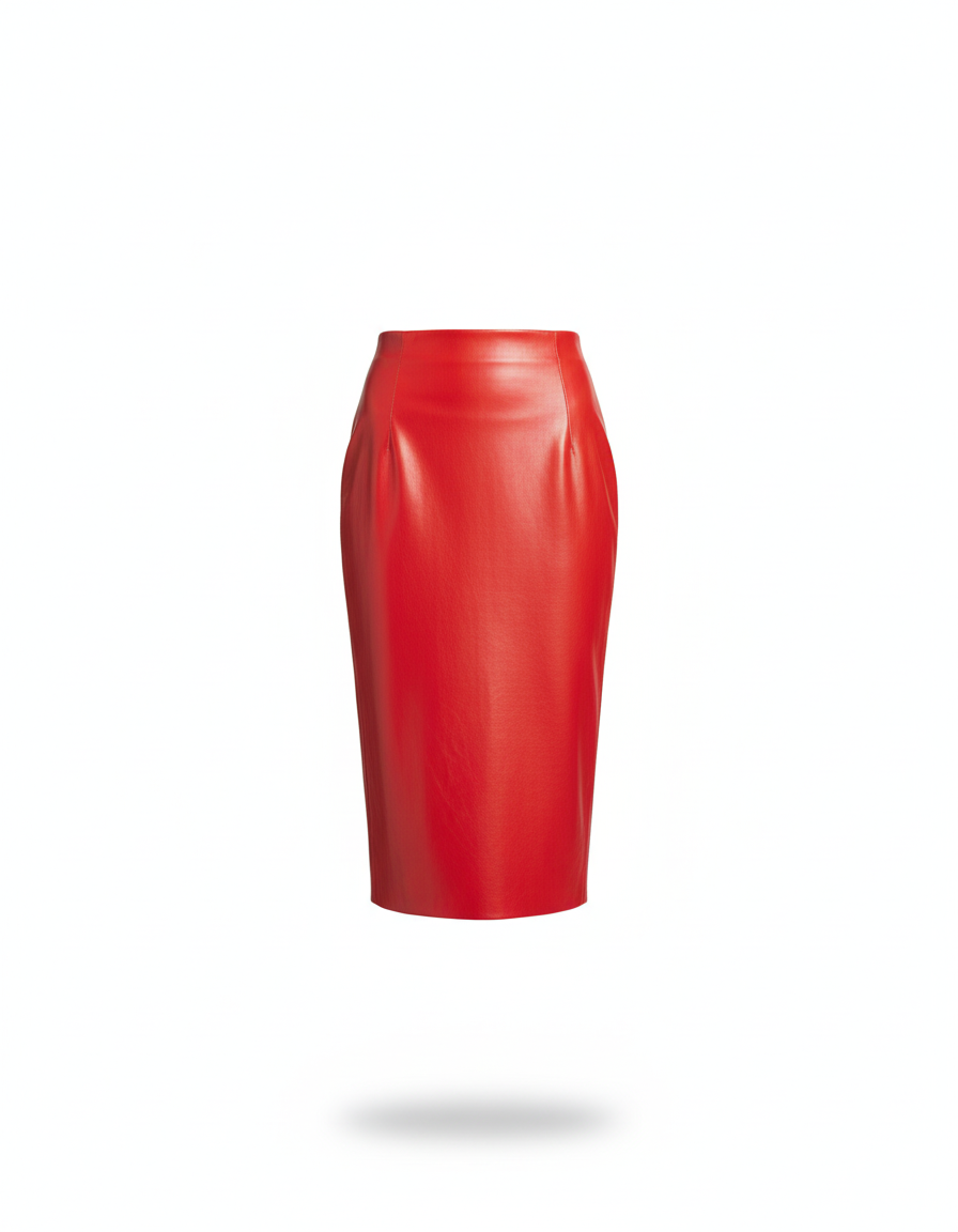 Osez affirmer votre présence avec la Jupe Longue Rouge Brillante Chic. Conçue pour la femme moderne qui ne craint pas de se démarquer, cette jupe moulante en cuir rouge vibrant est une véritable déclaration de style. Son allure audacieuse insuffle une confiance immédiate, transformant chaque pas en une affirmation de soi. Idéale pour les réunions importantes où l'impact est crucial ou les soirées où l'élégance est de mise, elle est la pièce maîtresse qui capte tous les regards, sans jamais en faire trop.