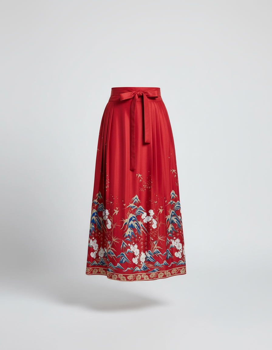 Ce qui distingue cette jupe, c'est son motif exclusif : une œuvre d'art textile où montagnes stylisées, fleurs épanouies et oiseaux gracieux se déploient sur un fond carmin intense. Chaque pli du satin reflète la lumière, accentuant le mouvement et la richesse des détails. La ceinture à nouer souligne élégamment la taille, offrant une adaptabilité et une touche finale sophistiquée. Loin des créations éphémères, la Jupe Longue Rouge et Blanche est une invitation à posséder une pièce intemporelle, alliant le confort d'un tissu léger à l'impact visuel d'un design exceptionnel.