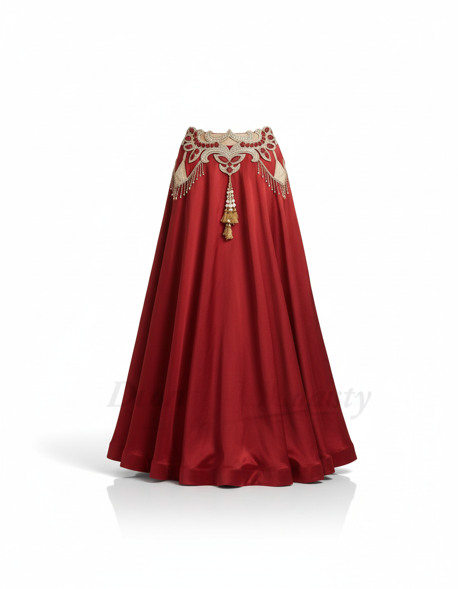 Cette jupe longue est conçue pour les performances de danse. Elle peut être portée dans un contexte de spectacle ou d'événement thématique.
