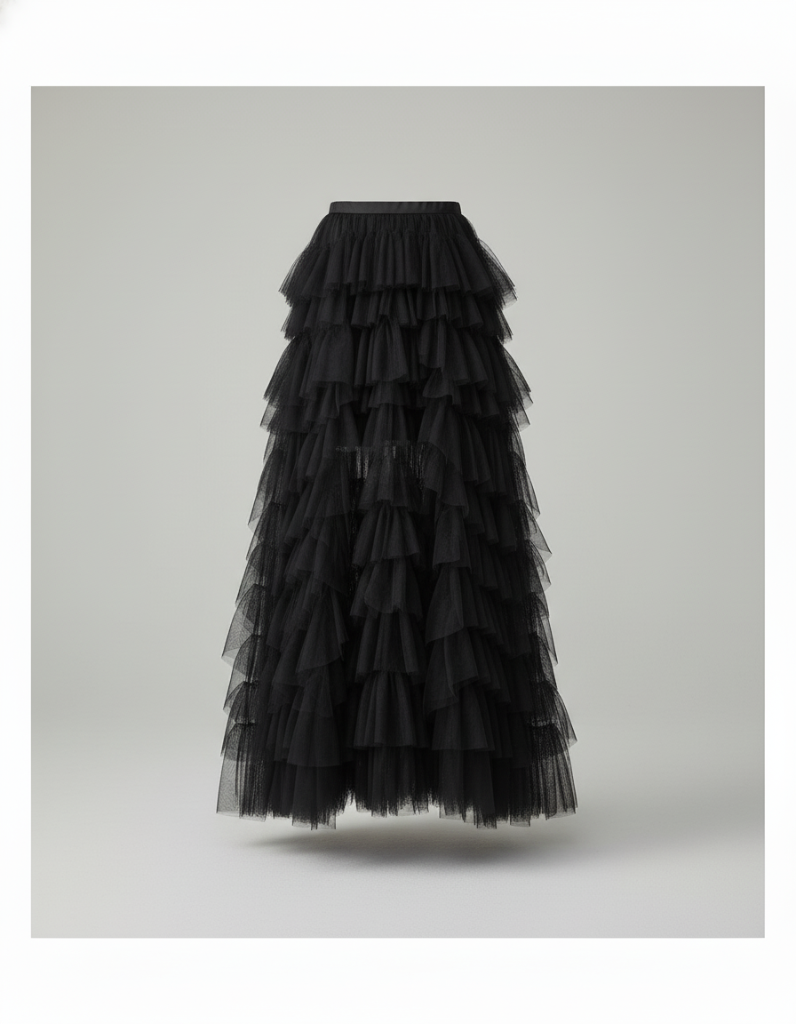 Ce qui distingue notre jupe Asymétrique en tulle, c'est son design unique et sa confection méticuleuse. Loin des créations éphémères, elle offre une silhouette haute-basse spectaculaire, révélant subtilement les jambes à l'avant tout en déployant un volume majestueux à l'arrière. Chaque volant, délicatement superposé, ajoute une texture riche et une profondeur inégalée, transformant le tulle en une œuvre d'art fluide. Portez-la avec un simple top pour un contraste chic ou avec un bustier sophistiqué pour une allure de tapis rouge. C'est la promesse d'une élégance moderne et d'un impact visuel inoubliable.