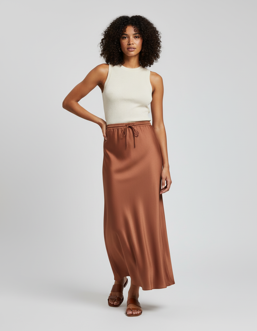 Jupe Longue Rouille : Le Luxe Fluide pour un Quotidien Élégant