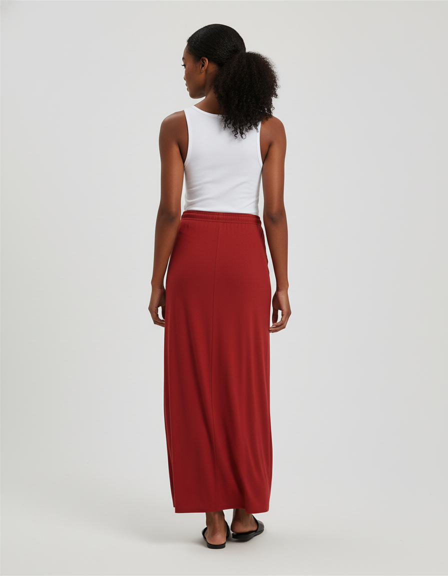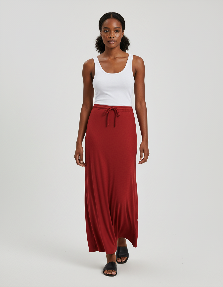 Adoptez un style décontracté et chic avec notre jupe longue rouille fluide et élégante, parfaite pour toutes les occasions.