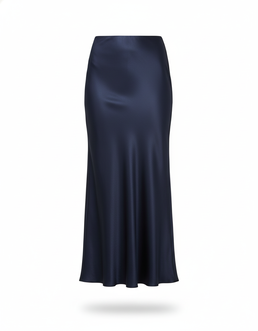 Jupe Longue Satin Bleu Marine à la Coupe Fluide