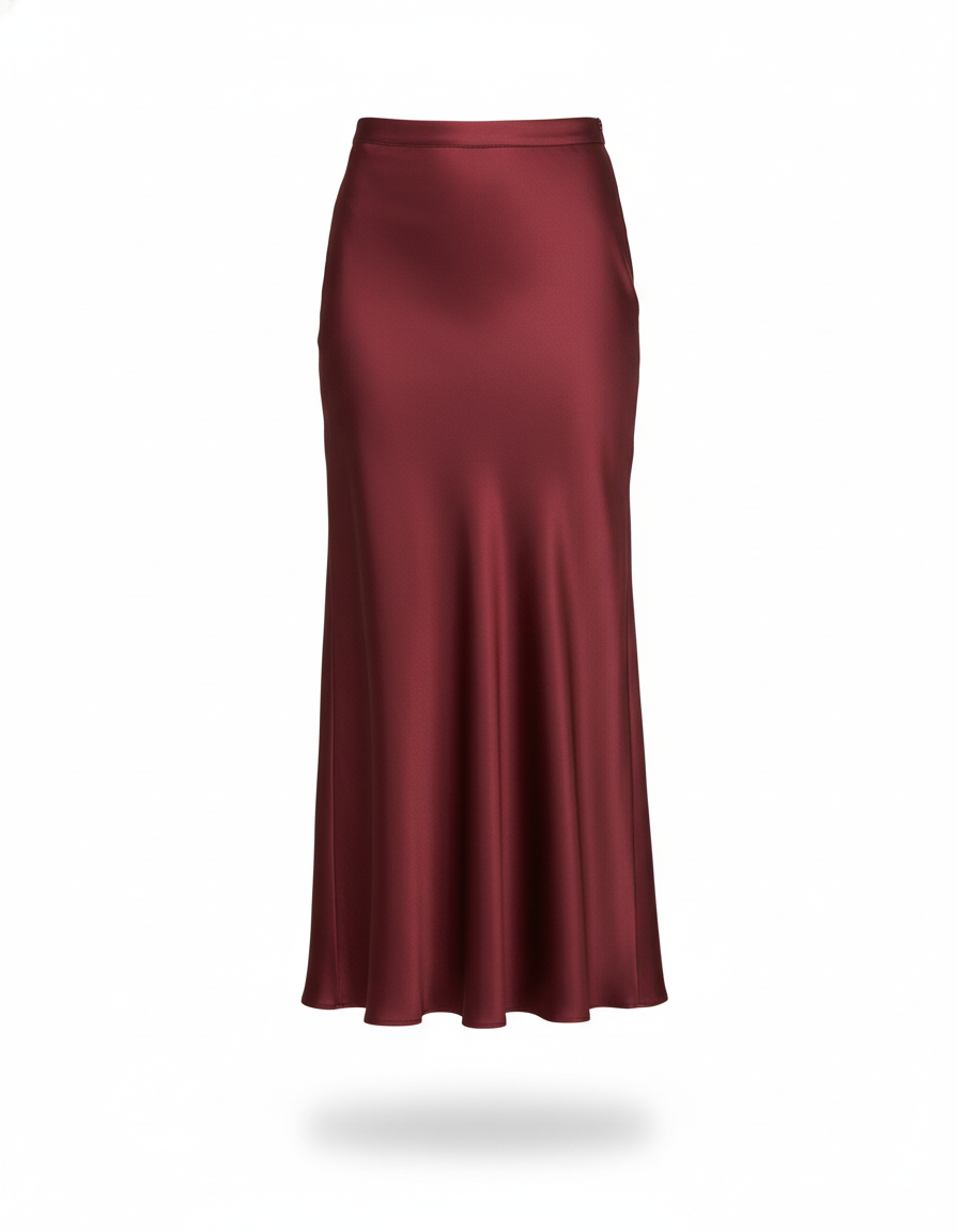 Découvrez notre jupe longue en satin bordeaux, l'incarnation de l'élégance et de la fluidité pour toutes vos occasions.