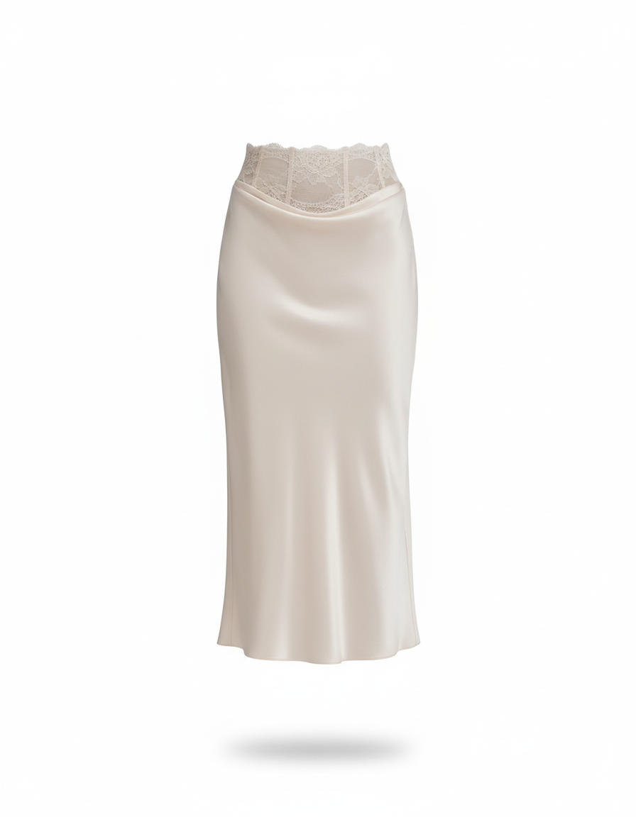 Jupe Longue Satin Dentelle Élégante Bohème : une pièce fluide et détaillée