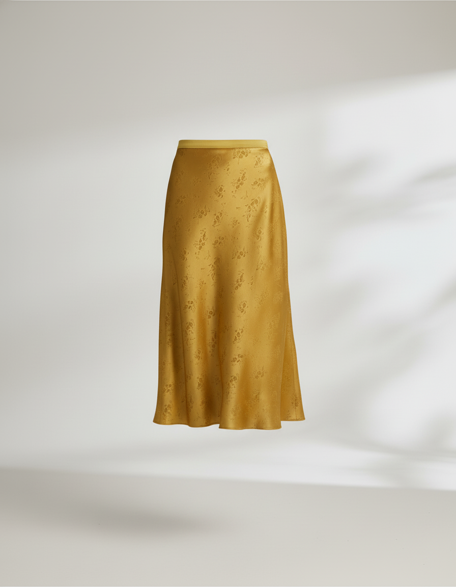 Jupe Longue Satin Jacquard Dorée Élégante : L'Éclat du Style