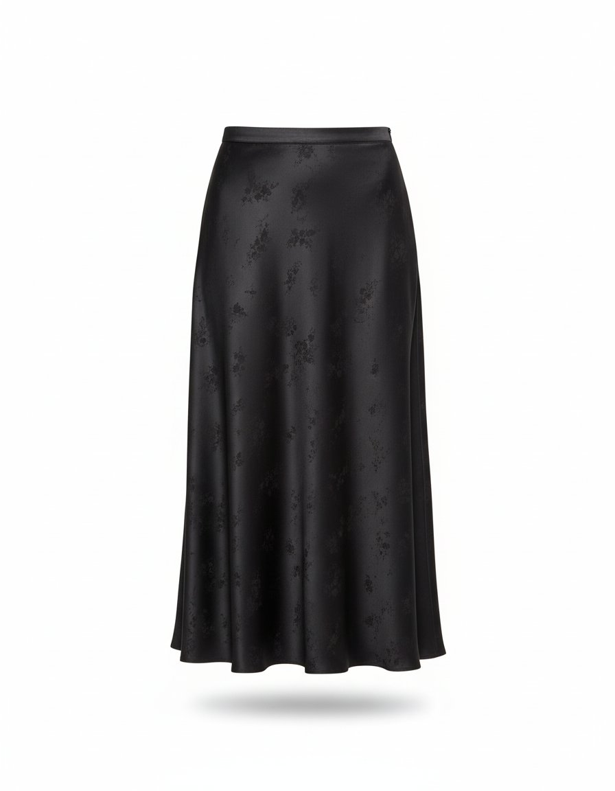 La Jupe Longue Satin Jacquard Noire : L'Élégance Discrète, le Charme Absolu.
