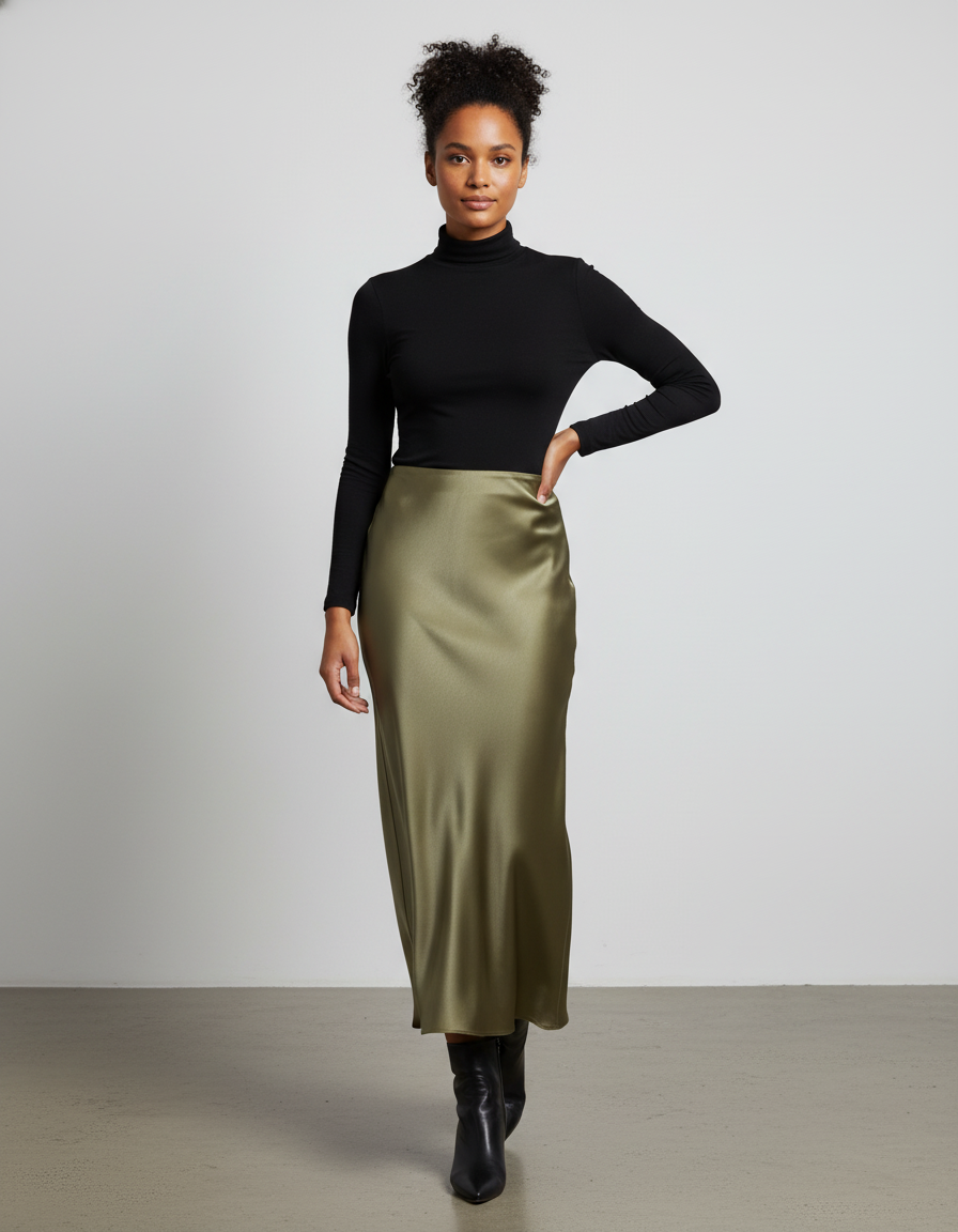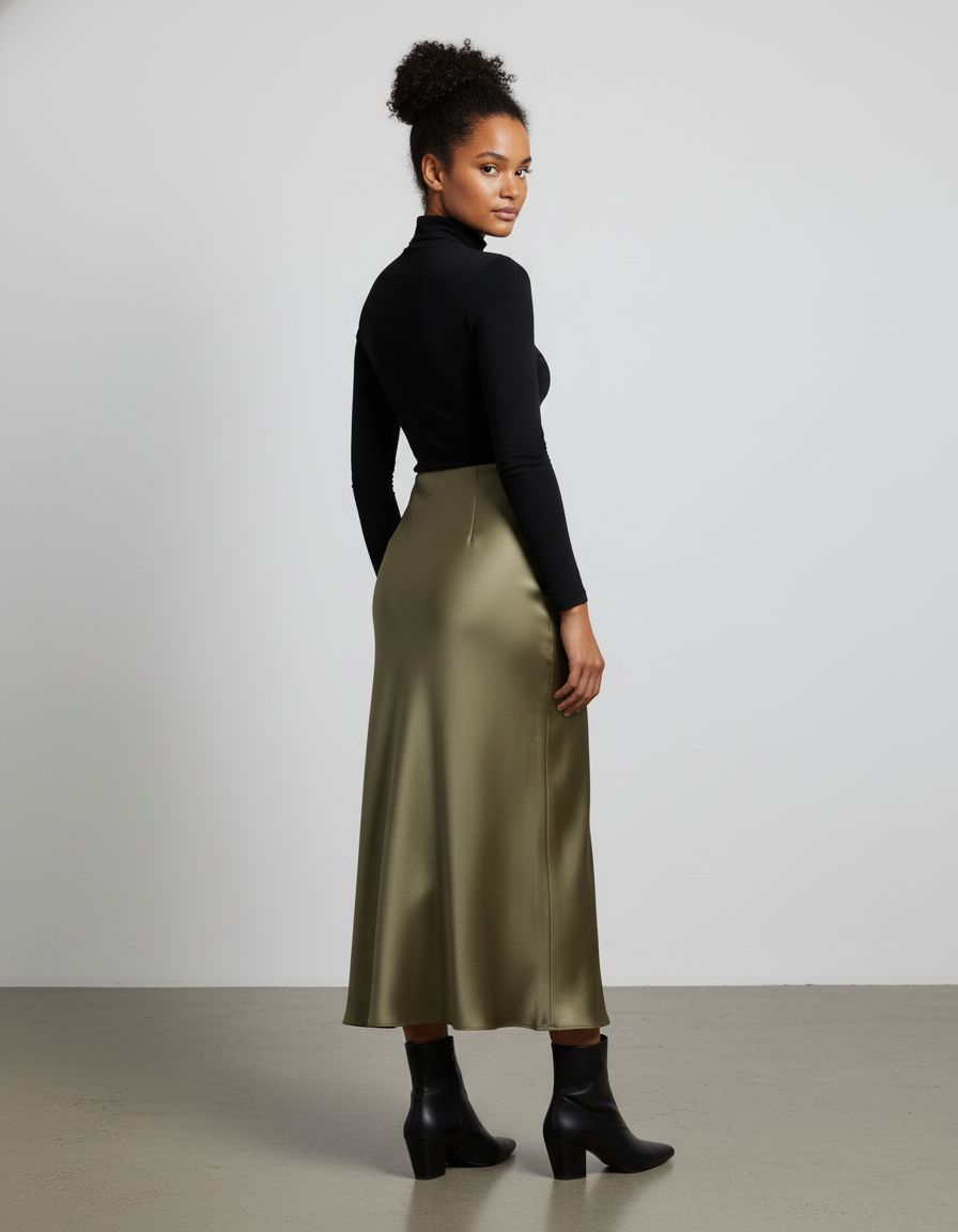 La Jupe Longue Satin Kaki : L'Élégance Fluide au Quotidien
