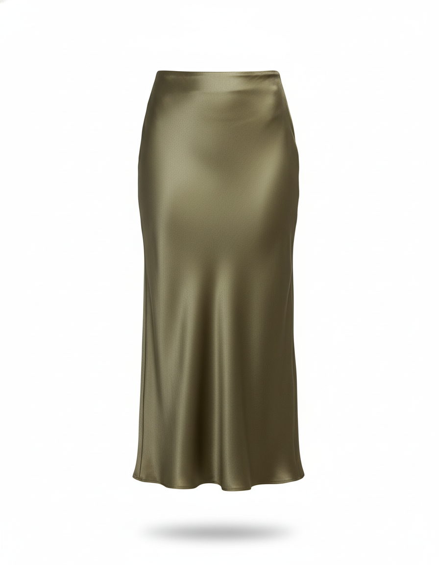 Jupe Longue Satin Kaki : Aperçu du Produit
