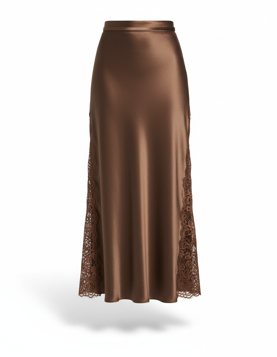 Jupe Longue Satin Marron Élégante : Caractéristique Principale
