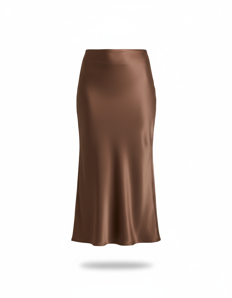 Pourquoi choisir la Jupe Longue Satin Marron Élégante Chic