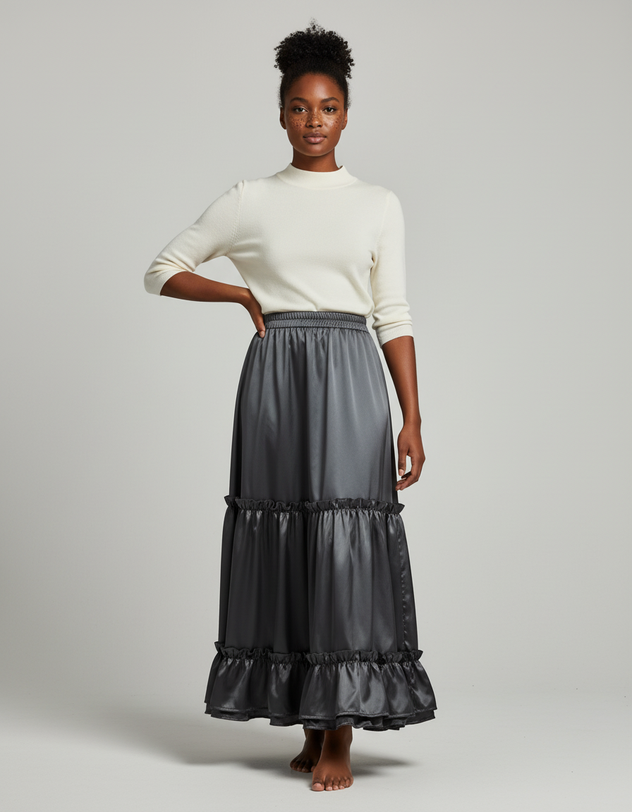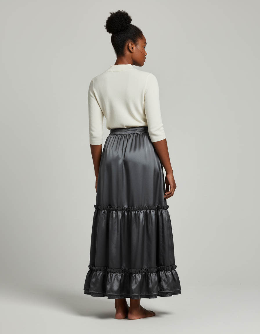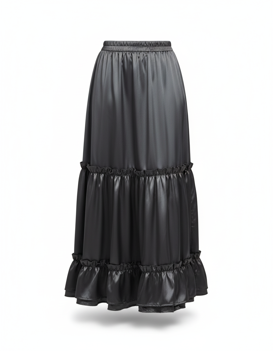 Jupe Longue Satinée Fluide À Volants : L'Élégance Redéfinie