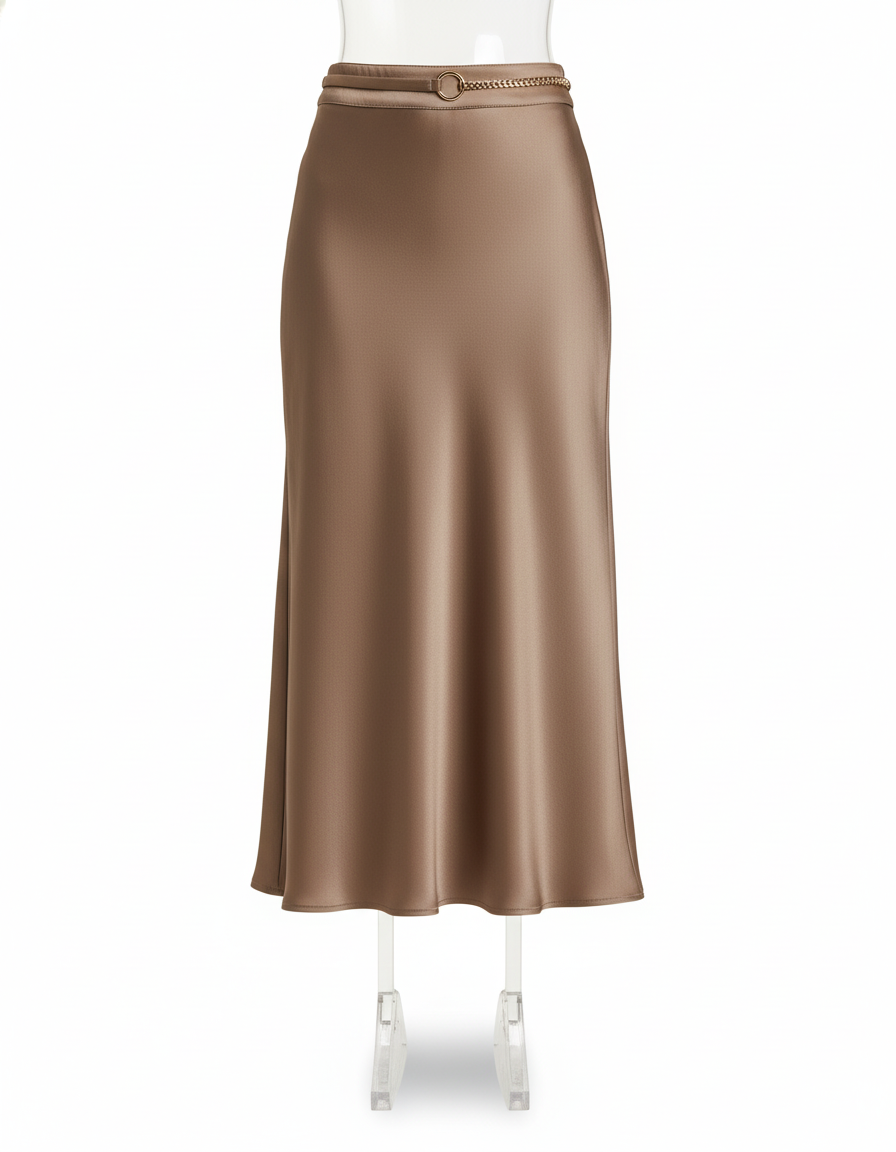 Adoptez l'élégance intemporelle avec notre jupe longue satinée, parfaite pour toutes les occasions.