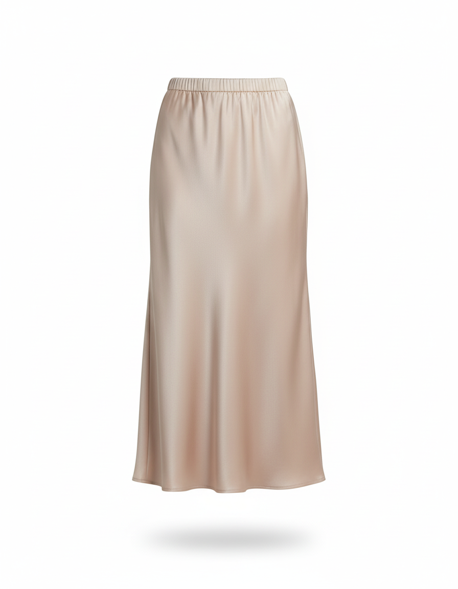Plongez dans le luxe discret de notre Jupe Longue Satinée Fluide. Confectionnée dans un satin beige d'une douceur exquise, son tombé évasé sublime chaque mouvement, offrant une silhouette élégante et une liberté absolue. Nous avons méticuleusement choisi ce tissu premium pour sa fluidité exceptionnelle, garantissant un confort inégalé et un drapé impeccable qui caresse la peau sans jamais entraver. Une pièce pensée pour celles qui exigent l'excellence sans compromis sur l'aisance.