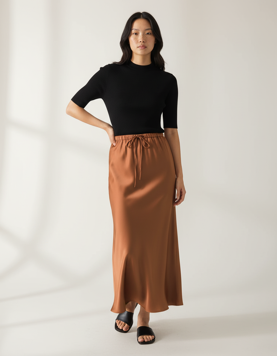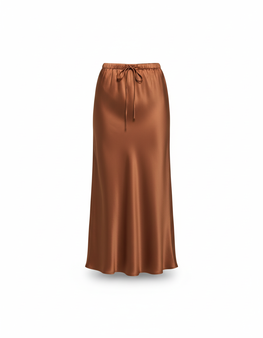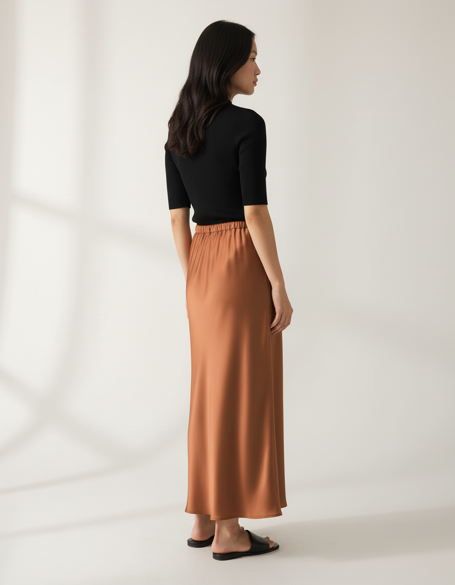 Jupe Longue Satinée Rouille Élégante : L'Élégance Fluide Redéfinie