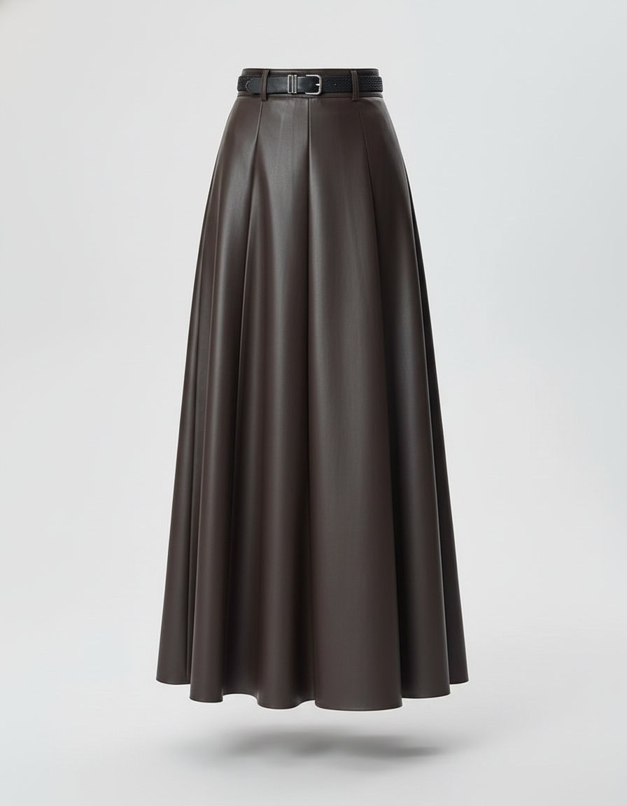 L'Élégance Hivernale Redéfinie : La Jupe Longue Simili Cuir Marron