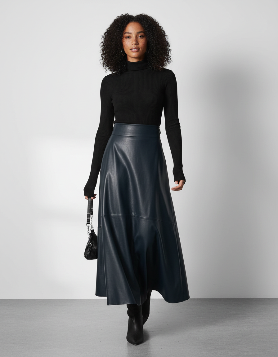 Pourquoi choisir la Jupe Longue Similicuir Évasée Élégante