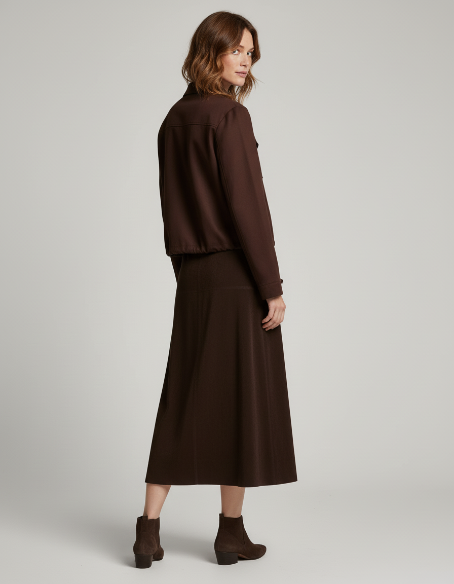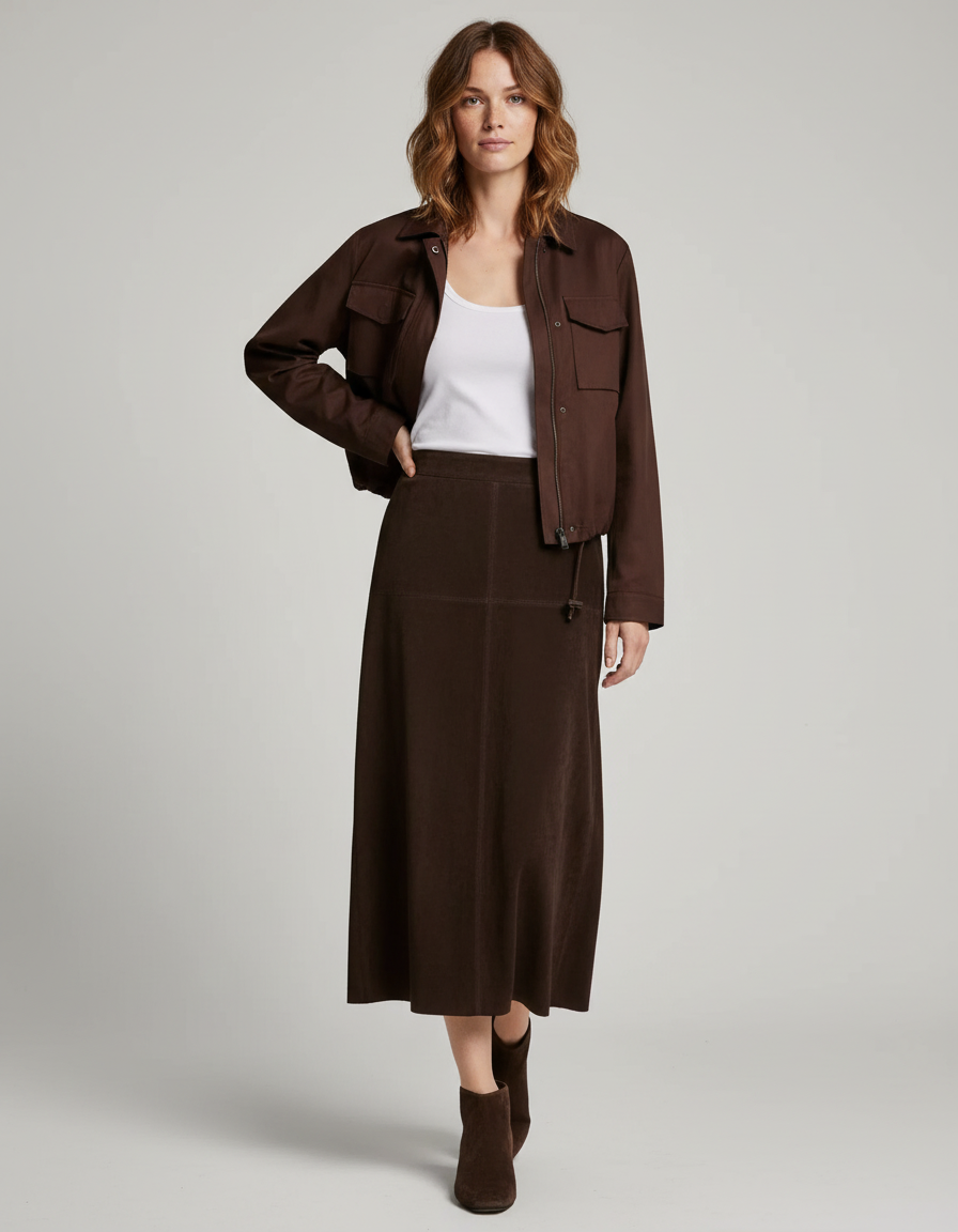 Découvrez notre Jupe Longue Suedine, une pièce élégante et polyvalente pour votre garde-robe.