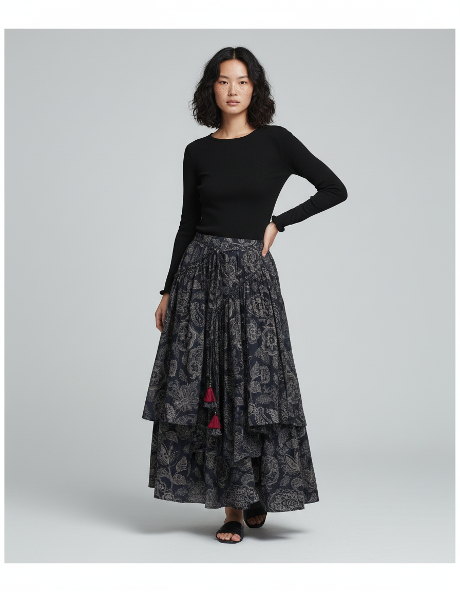 L'Élégance Bohème Redéfinie : La Jupe Cachemire Superposée
