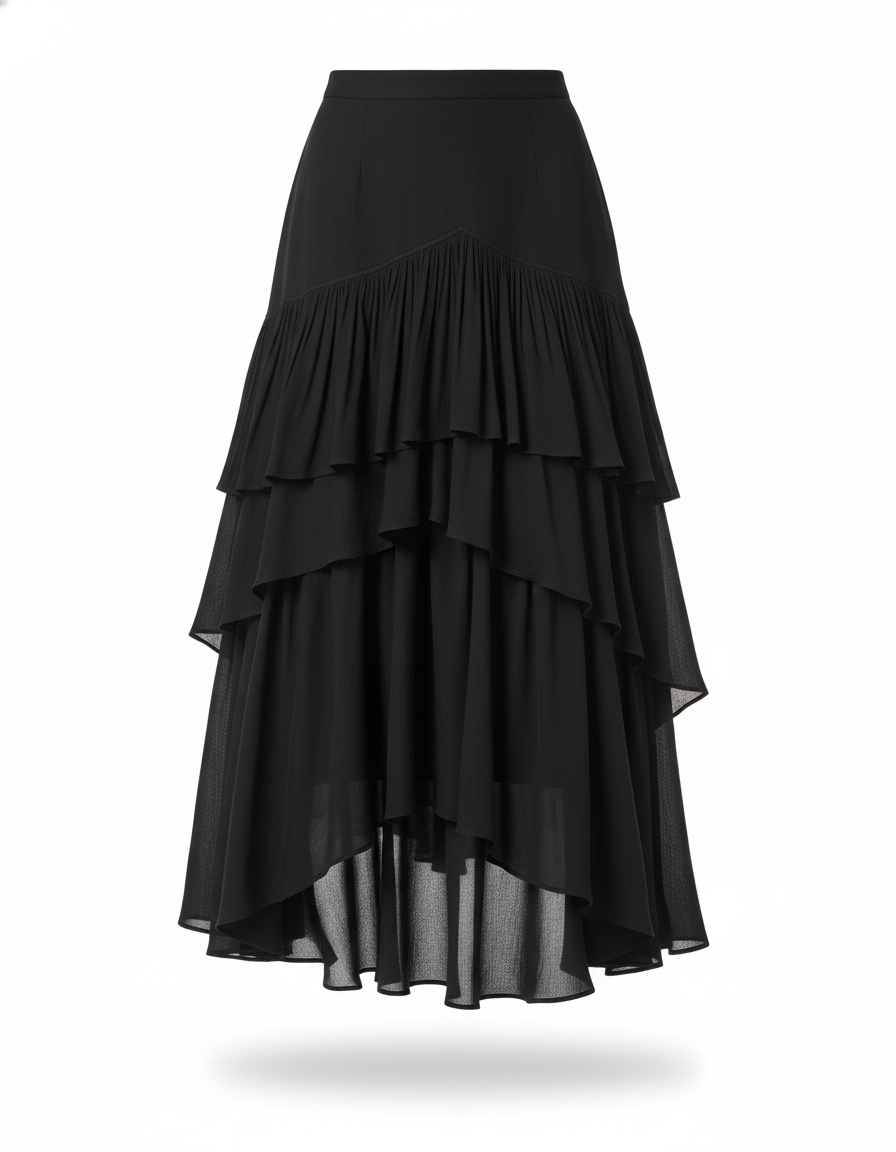 La Jupe Longue Superposée Plissée Élégante : L'Harmonie du Mouvement