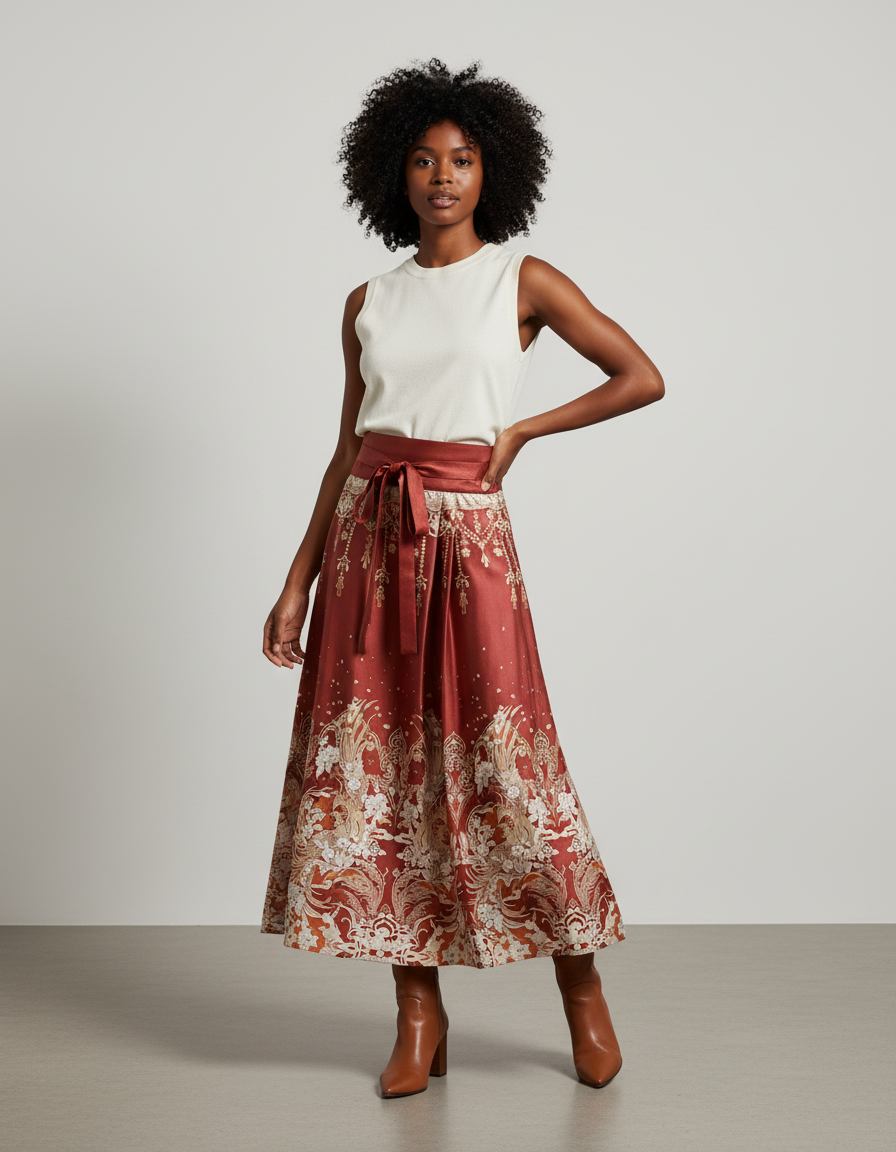 La Jupe Longue Taffetas Terracotta : L'Art de l'Élégance Fluide