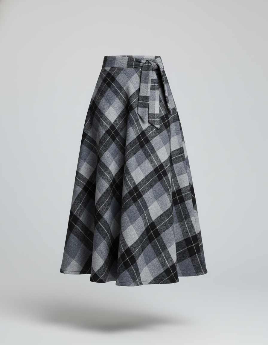 Adoptez l'élégance sans effort avec notre Jupe Longue Tartan, une pièce maîtresse conçue pour la femme moderne qui ne transige pas sur le style ni le confort. Idéale pour celles qui recherchent une silhouette distinctive et raffinée, cette jupe évasée en laine fluide vous enveloppe d'une chaleur douce et d'un mouvement gracieux. Son motif tartan intemporel, revisité dans des nuances contemporaines de gris et noir, offre une polyvalence inégalée. Elle passe avec aisance d'un rendez-vous professionnel à une soirée élégante, devenant l'investissement parfait pour une garde-robe sophistiquée et durable.