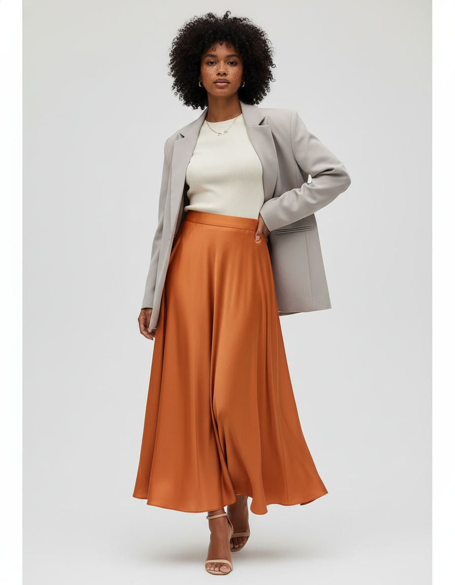 Jupe Longue Terracotta : L'Éclat du Satin pour une Allure Inoubliable
