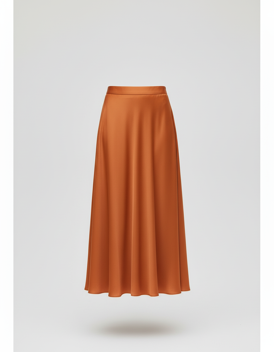 Jupe Longue Terracotta Satin Élégante : L'Art de la Fluidité Majestueuse