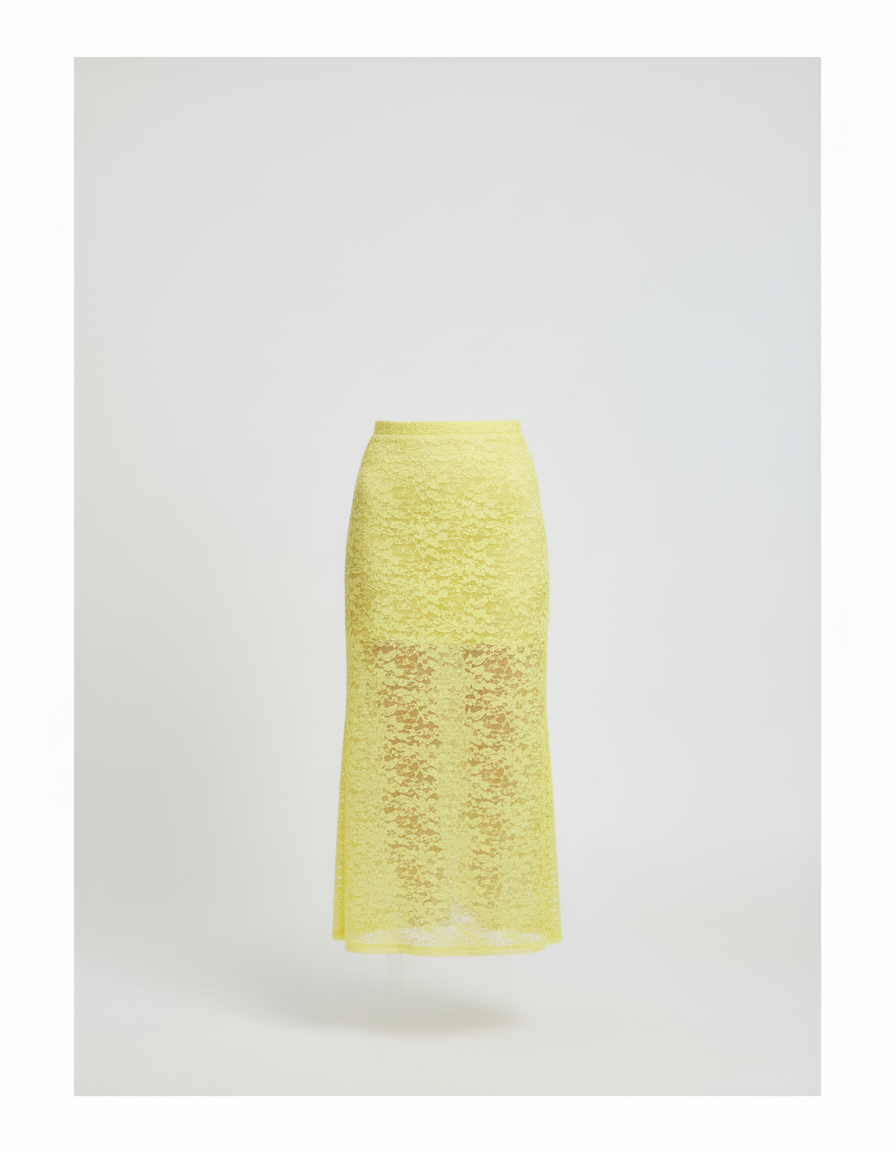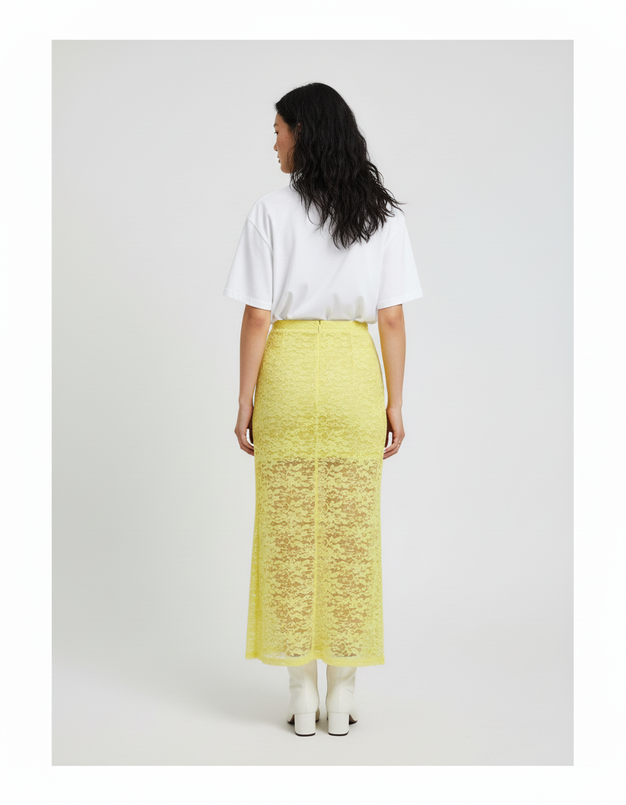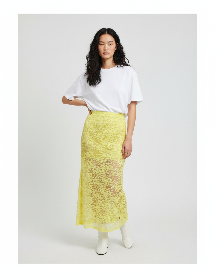 Révélez votre style avec la Jupe Longue Texturée, une pièce audacieuse qui incarne l'élégance contemporaine. Conçue pour la femme moderne qui ne craint pas d'affirmer sa singularité, cette jupe moulante en dentelle jaune est une véritable déclaration de mode. Sa coupe droite sublime la silhouette avec une grâce discrète, tandis que la texture délicate de la dentelle offre un jeu de transparence subtil, invitant au regard sans jamais trop en dévoiler. C'est l'équilibre parfait entre audace et raffinement, idéale pour celles qui cherchent à infuser leur garde-robe d'une touche de luxe inattendu.