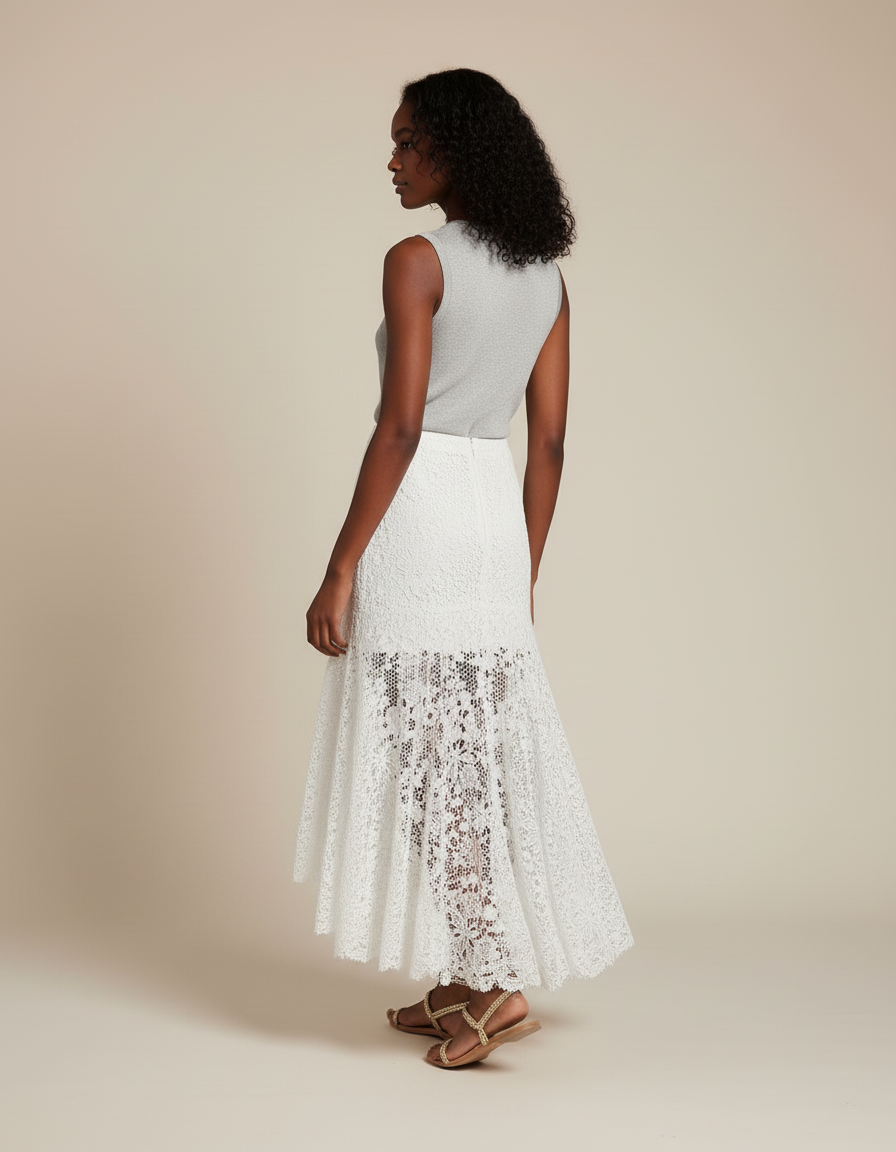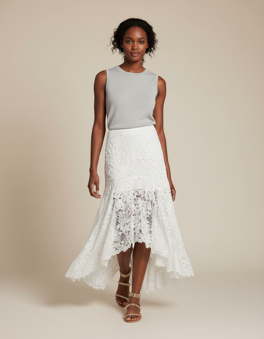 La Jupe Asymétrique en Dentelle : L'Allure Cérémonielle Réinventée