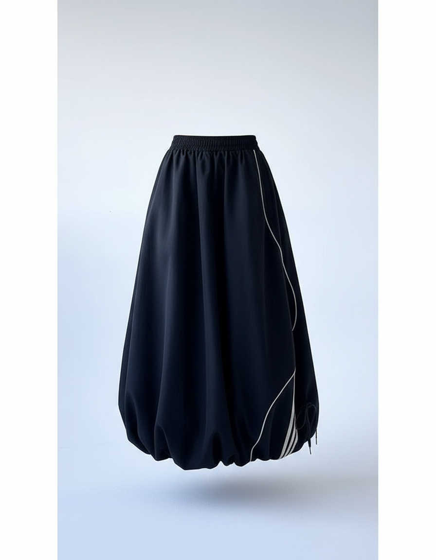 - Détails : Rayures blanches appliquées sur le côté et cordon de serrage au bas de la jupe.