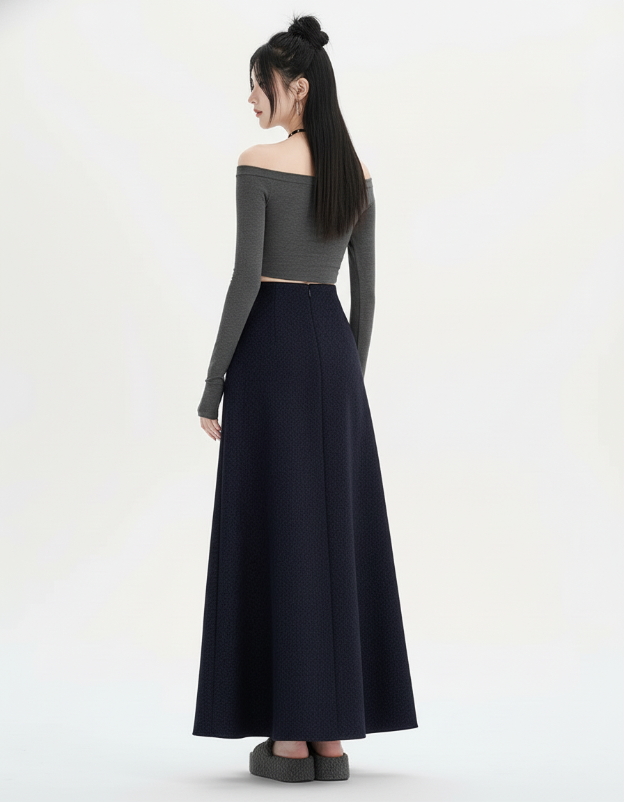 Jupe Longue Trapèze Bleue Marine Chic – L'Élégance Redéfinie